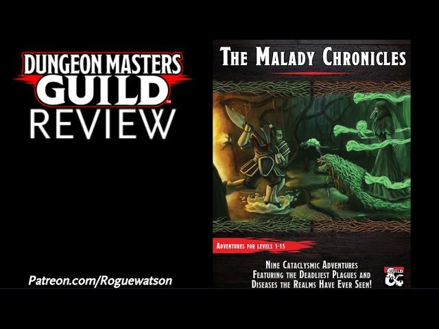 Review of the DMs Guild adventure compilation, "The Malady Chronicles" by Jason Bakos, Themis Paraskevas, Tal Aviezer, Clan Crafter Hralding, Dylan Hyatt, Chad M. Lensch, GM Lent, Richard Malena-Webber, C M O'Halloran, John D. Parker, Blaise Wigglesworth. Affiliate link: